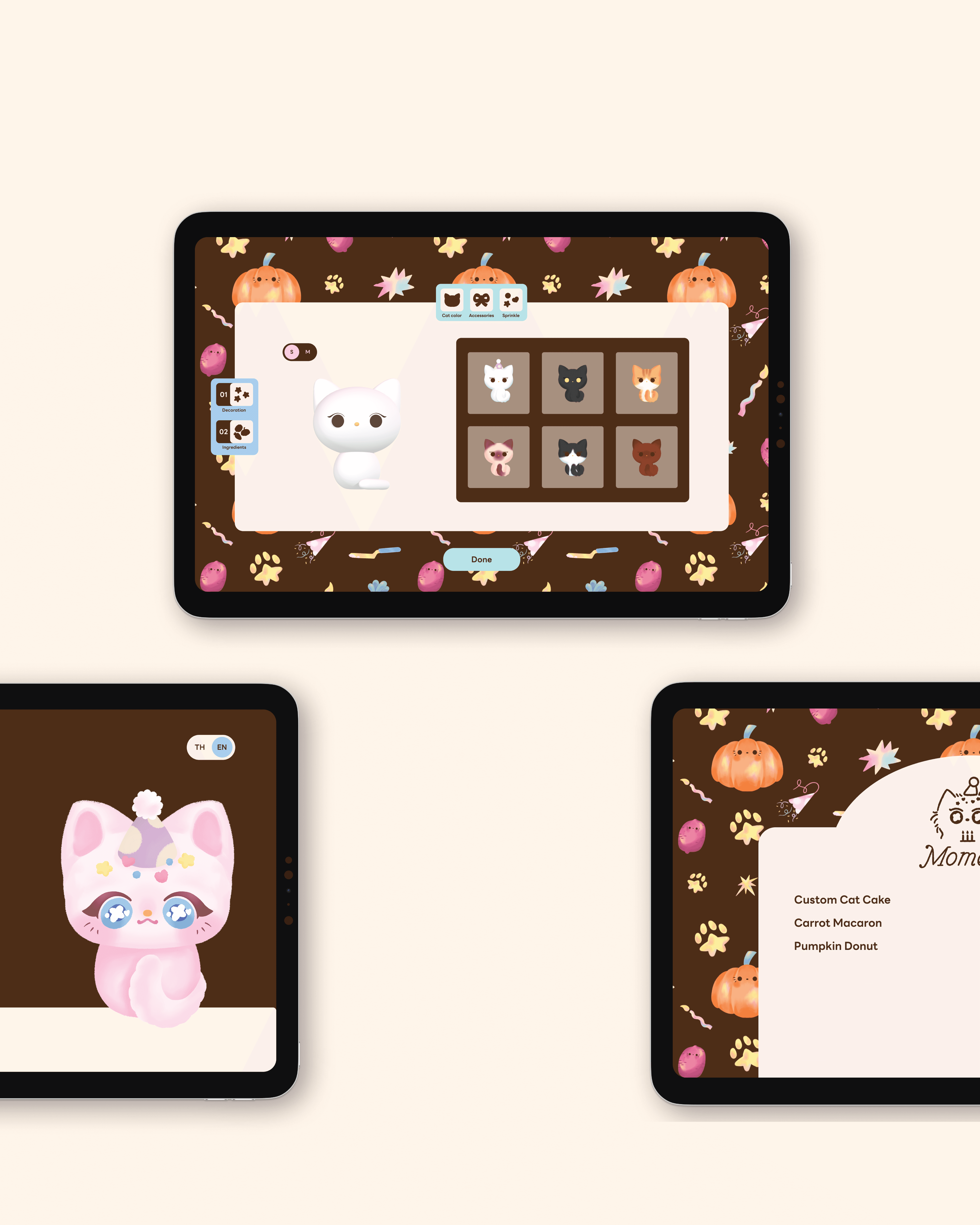 Momemi was created based on the concept of pet humanization, viewing pets as important family members. Celebrating a pet’s birthday is not simply a celebration, but an expression of love and shared moments. The project strengthens the bond between humans and cats through customizable birthday cakes designed via a website or in store digital screens. Each product combines owner participation with careful attention to cat safe nutrition, creating meaningful experiences for beloved cats.