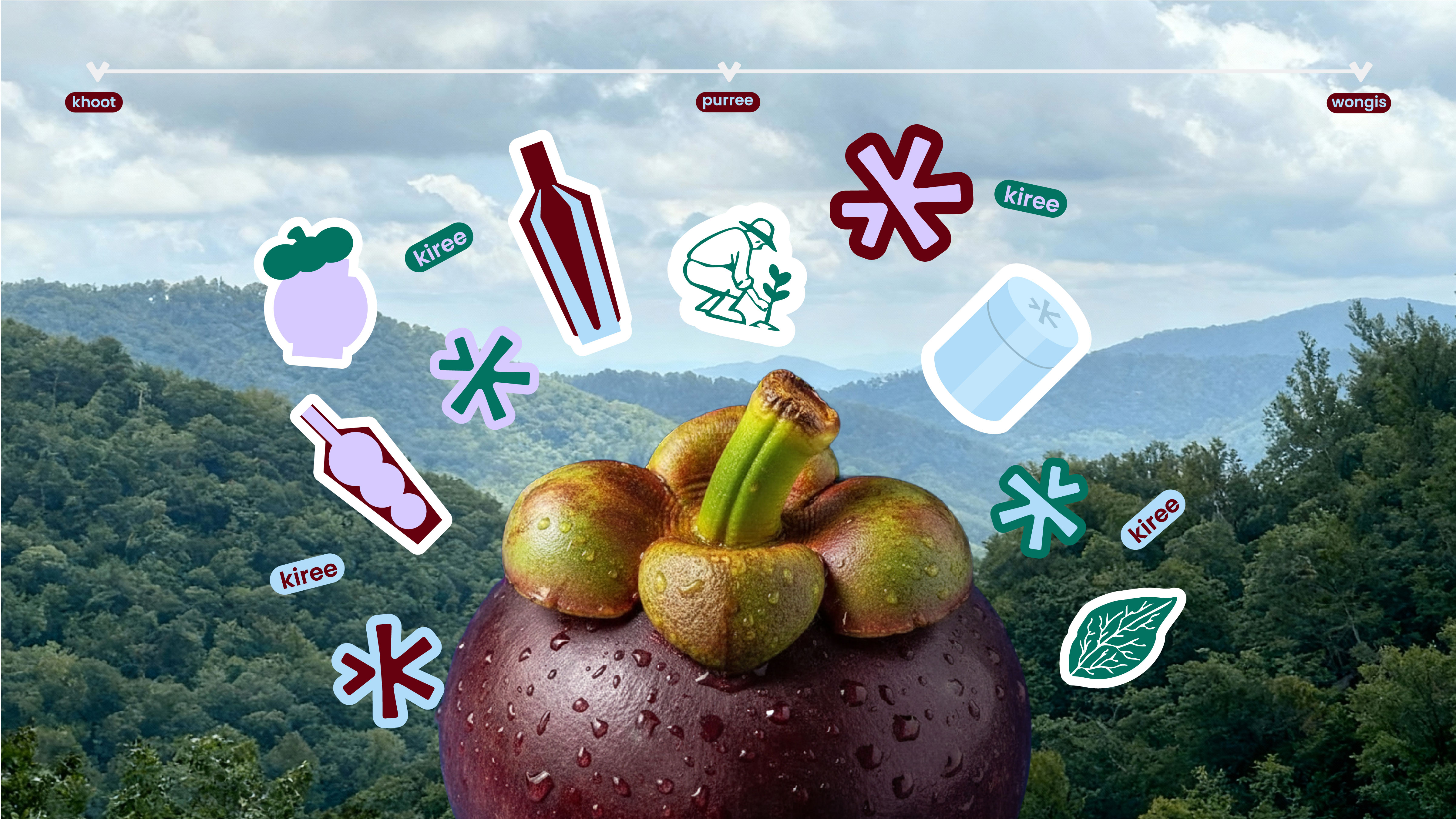 มังคุด จากหมู่บ้านคีรีวง ในจังหวัดนครศรีธรรมราช เป็นหนึ่งในพื้นที่ที่ขึ้นชื่อเรื่องมังคุดที่สุดในภาคใต้ ทำให้เกิดภูมิปัญญาท้องถิ่นในการนำมังคุดมาประยุกต์เป็นสินค้าต่างๆ แต่เพราะมังคุดเก็บเกี่ยวได้แค่ช่วงหนึ่งของปีและมีการเพาะปลูกมากทำให้ราคามังคุดตกต่ำอย่างหลีกเลี่ยงไม่ได้ ซึ่งปัญหาเหล่านี้ได้เป็นส่วนในการขับเคลื่อนสู่การออกแบบและสร้างสรรค์แบรนด์ kiree ที่ได้การนำเรื่องราวความสัมพันธ์ระหว่างธรรมชาติและคนในชุมชน ที่พึ่งพาอาศัยกันในวิถีชีวิตประจำวัน ผ่านการออกแบบอัตลักษณ์แบรนด์ในมุมมองร่วมสมัย