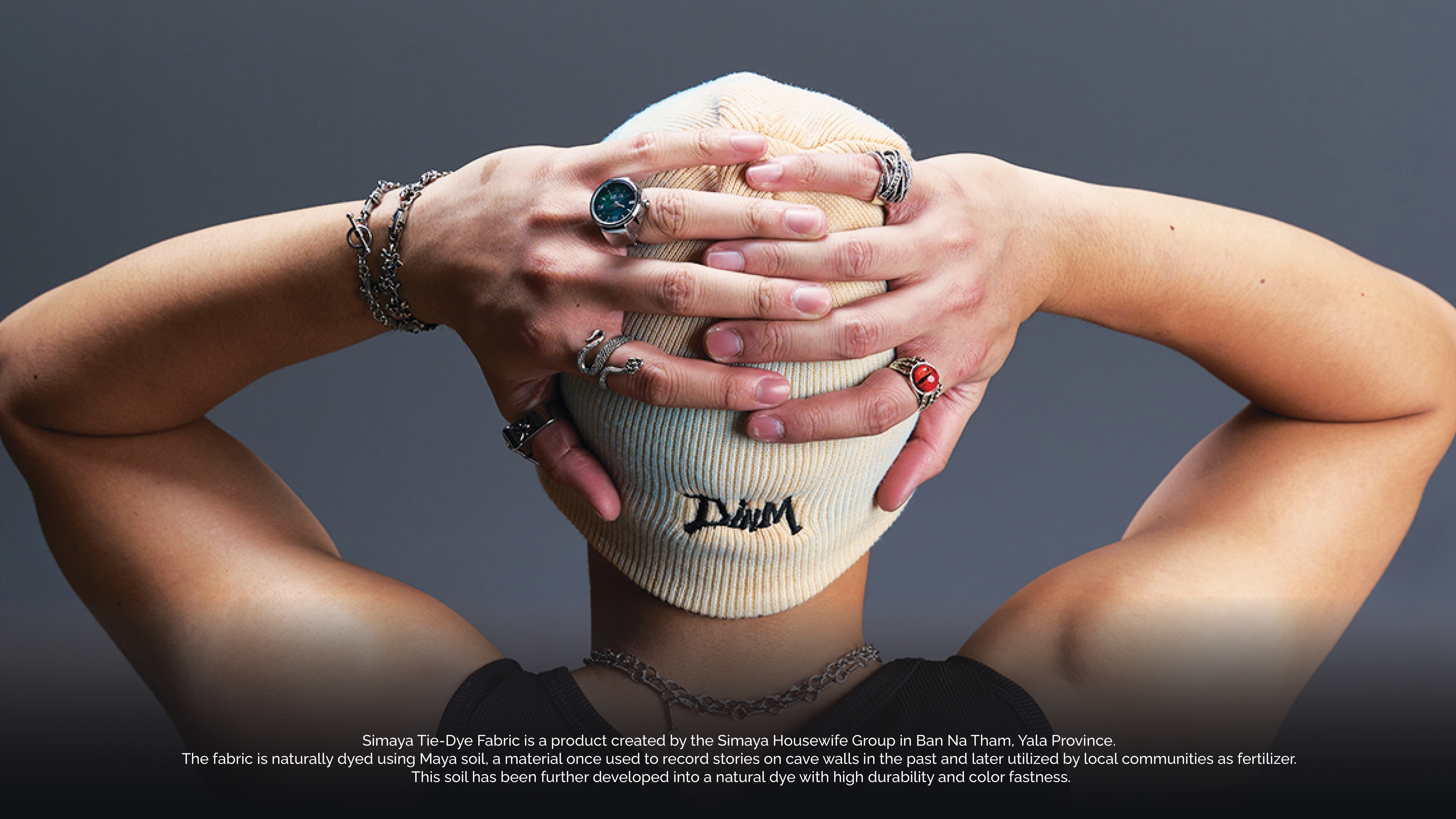 Simaya Tie-Dye Fabric is a product created by the Simaya Housewife Group in Ban Na Tham, Yala Province. The fabric is naturally dyed using Maya soil, a material once used to record stories on cave walls in the past and later utilized by local communities as fertilizer. This soil has been further developed into a natural dye with high durability and color fastness. Corporate identity design for a natural-dyed textile brand aims to create a new brand image by blending street fashion with local cultural elements. The design serves to support and add value to community products while making them more accessible to a new generation.