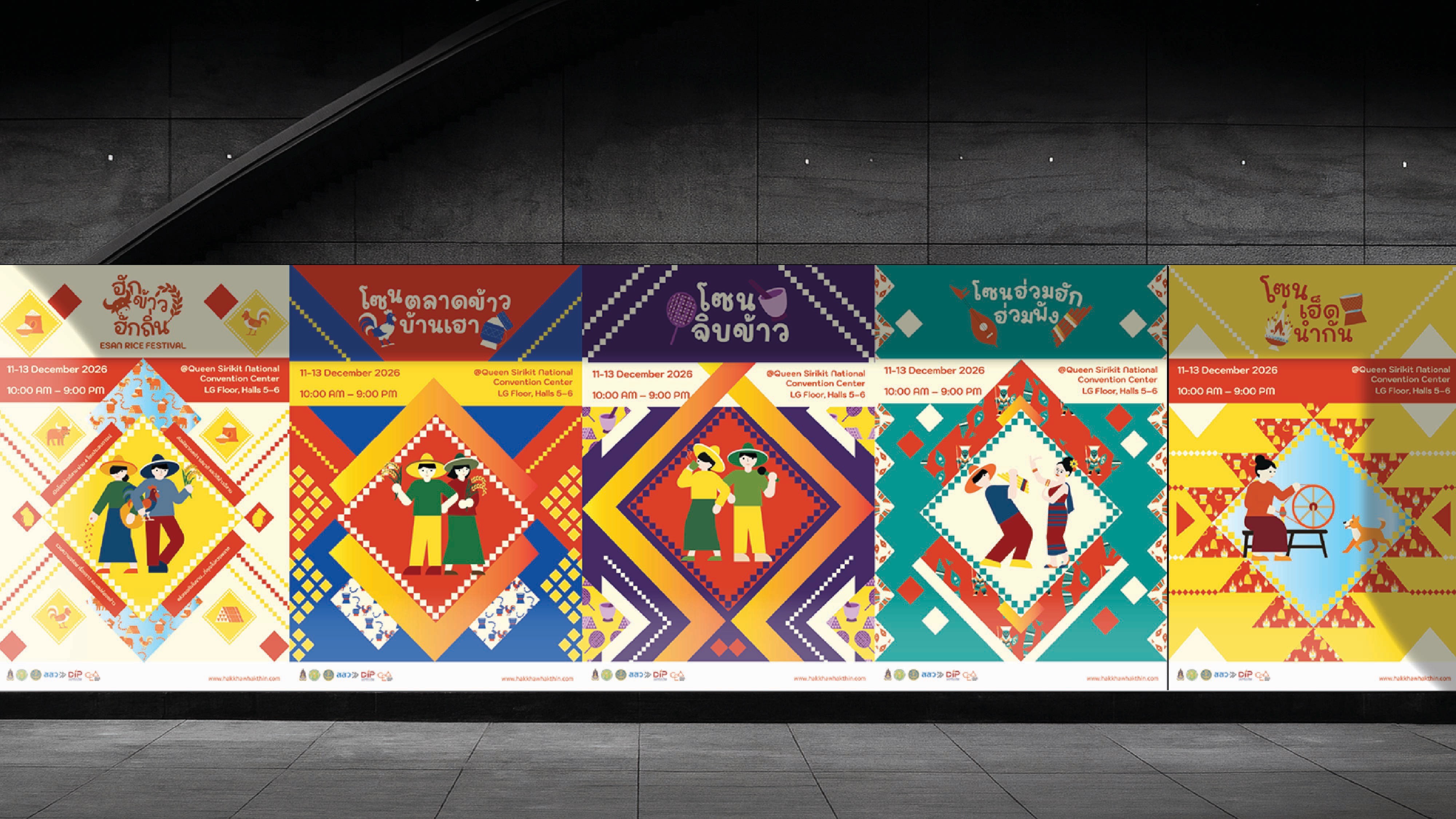 Rice in Northeastern Thailand reflects rich local wisdom and a deep cultural heritage. This project proposes the design of the “HakKhaw HakThin” Festival as a platform for cultural storytelling through four activity zones: Rice and Community, Culture and Arts, Innovation and Cafe, and Hands-on Learning Activities, aimed at encouraging youth participation and supporting the sustainable continuation of cultural values.