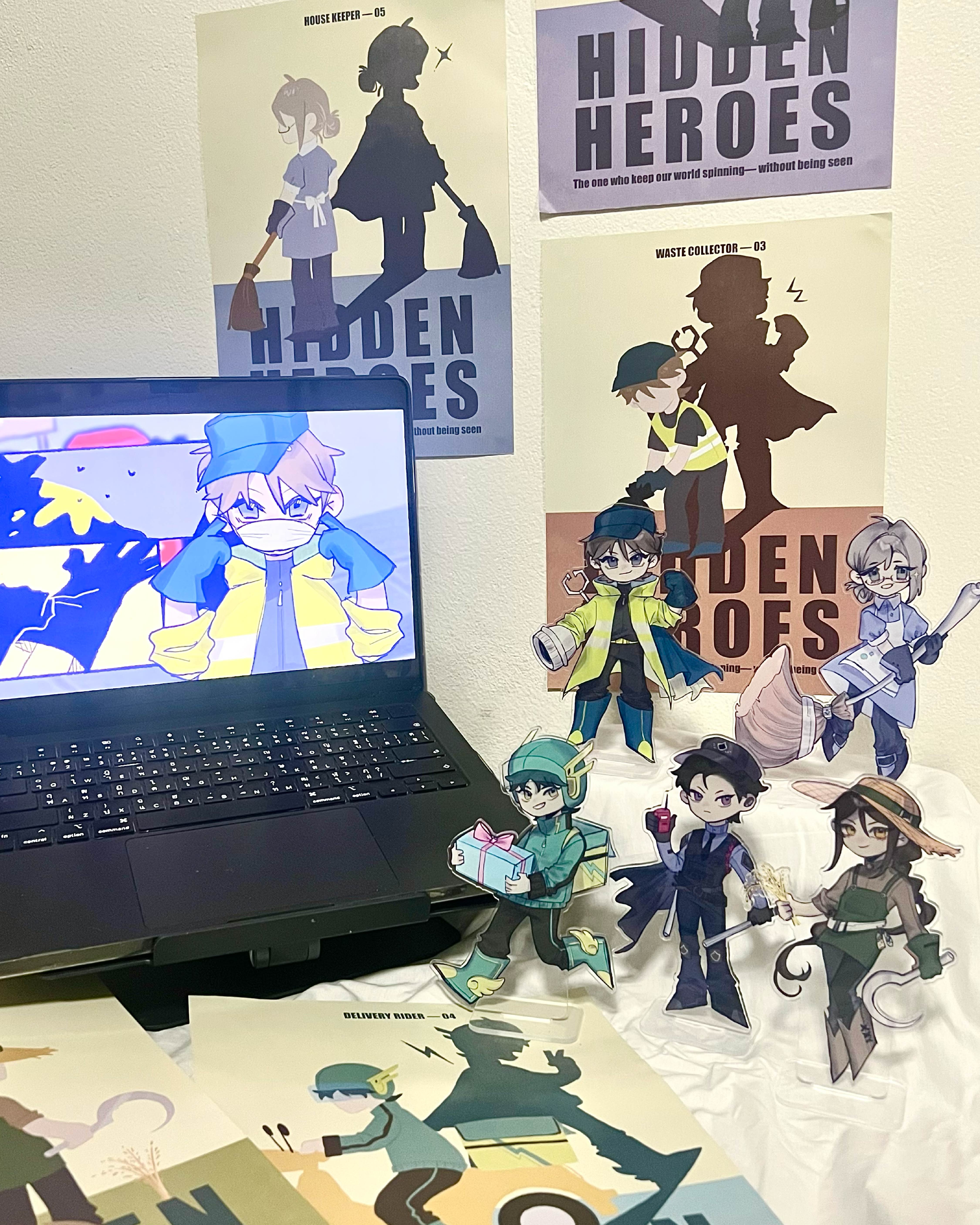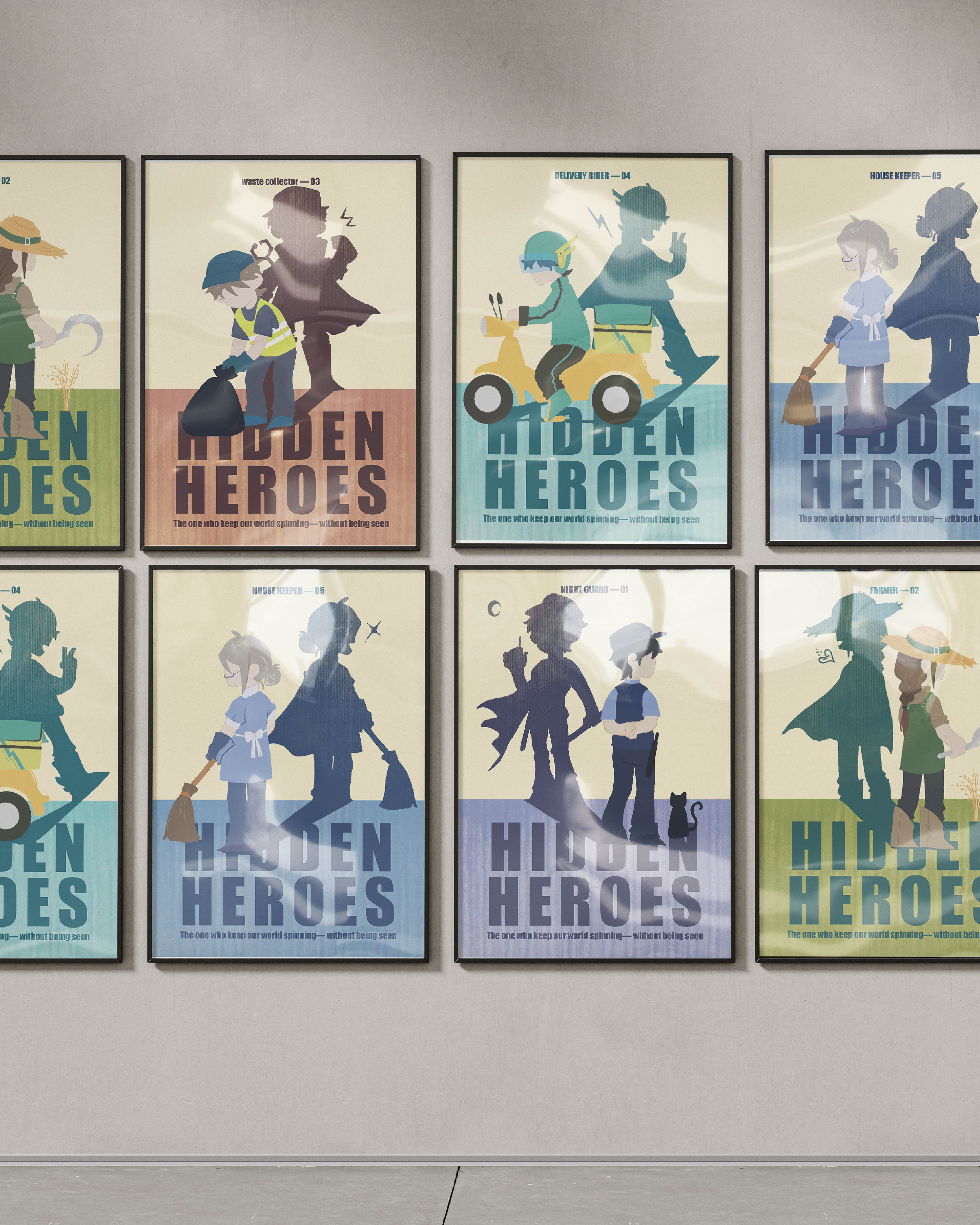 This project aims to reflect the value and role of occupations that are often overlooked in society through hero-inspired character design. The characters are based on sanitation workers, security guards, housekeepers, delivery riders, and farmers, and are presented through creative media such as short motion graphics, posters, and other visual materials. The project seeks to create new perceptions, reduce social prejudice, and encourage audiences to recognize the importance of these workers in everyday life.