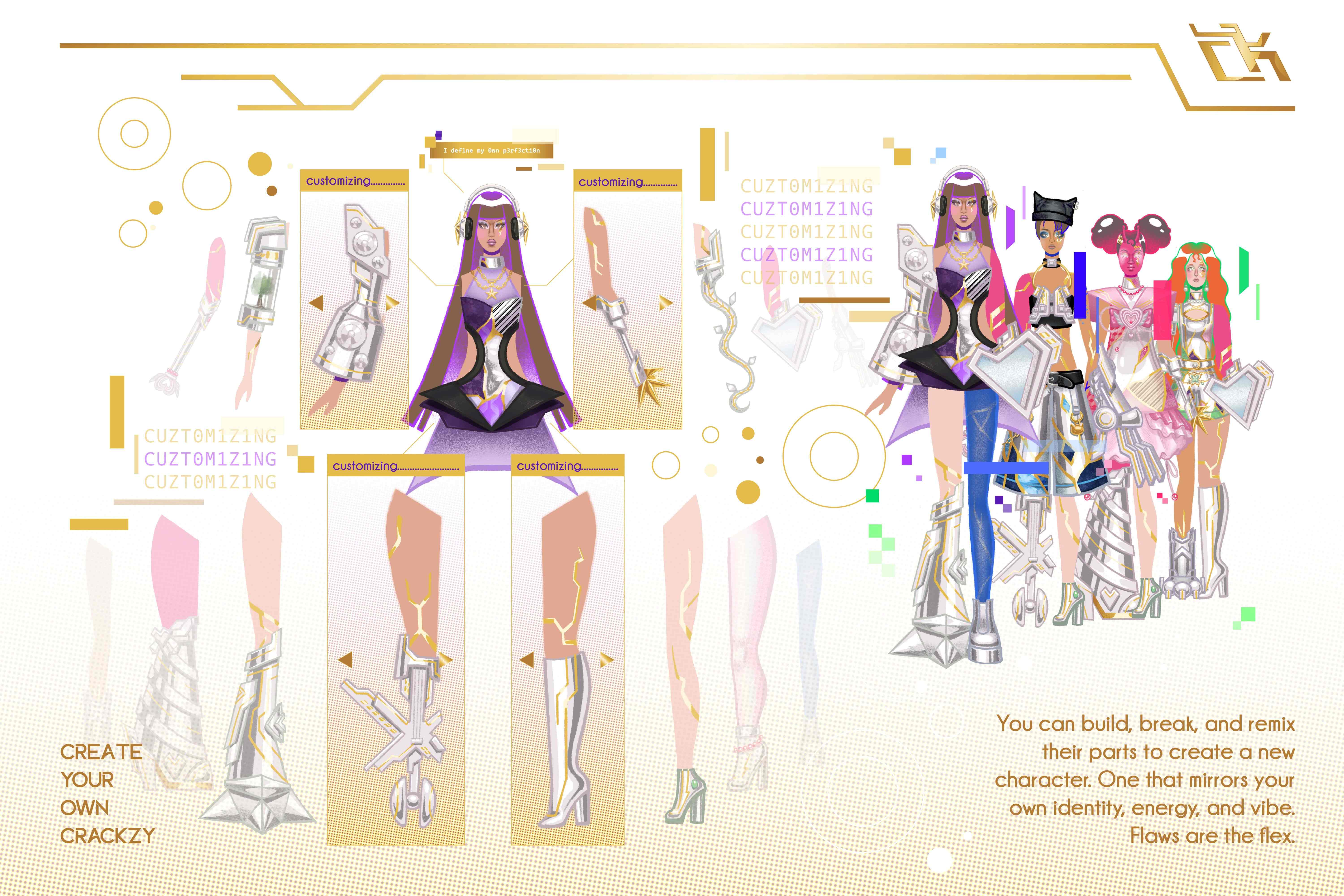 ในโลกที่ทุกคนถูกตัดสินด้วยมาตรฐานเดียว Crackzy Club เชื่อว่า “ความสมบูรณ์แบบ” ไม่ใช่สิ่งที่ใครจะมาชี้นำให้เราได้ แต่มันคือสิ่งที่เราต้องเป็นผู้กำหนดเอง Crackzy Club จึงแบรนด์ตุ๊กตาแฟชั่นที่เฉลิมฉลองความงามที่เกิดจากการเป็นตัวของตัวเองในแบบที่ไม่ต้องแคร์ใคร ตุ๊กตาแต่ละตัวโดดเด่นอย่างมีเอกลักษณ์ แขนขาจักรกลของพวกเธอไม่ใช่ข้อบกพร่อง แต่คือการแสดงออกด้านตัวตนที่แปลกแตกต่าง เผยให้เห็นว่าพวกเขาเป็นใครจริงๆจากภายใน นอกจากนั้นยังสามารถถอดแยกชิ้นส่วนต่อใหม่ เพื่อสร้างตัวละคร Crackzy Club ในแบบของคุณเองได้
