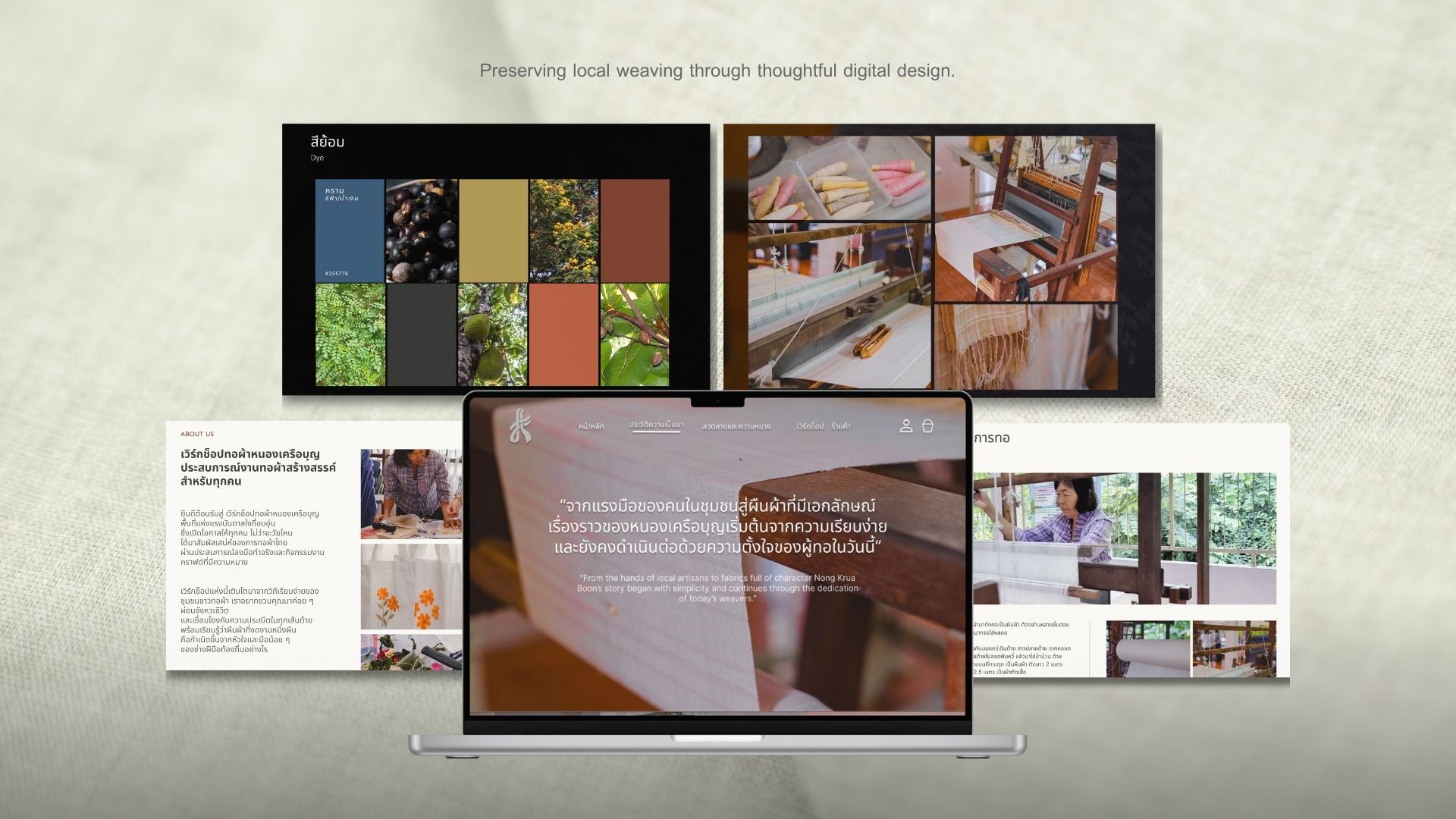 This website design project aims to promote weaving communities in Ayutthaya, with a focus on the Nong Khrua Bun Weaving Community. The objective is to present the community’s identity, way of life, and local weaving wisdom through digital media. The website is designed to communicate information clearly and systematically, making it accessible to a wider audience in order to enhance public awareness and support the sustainable development of the community in the digital era.