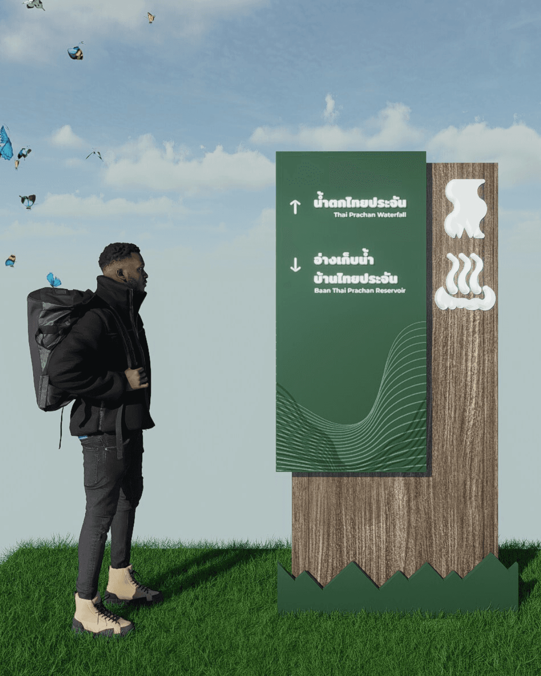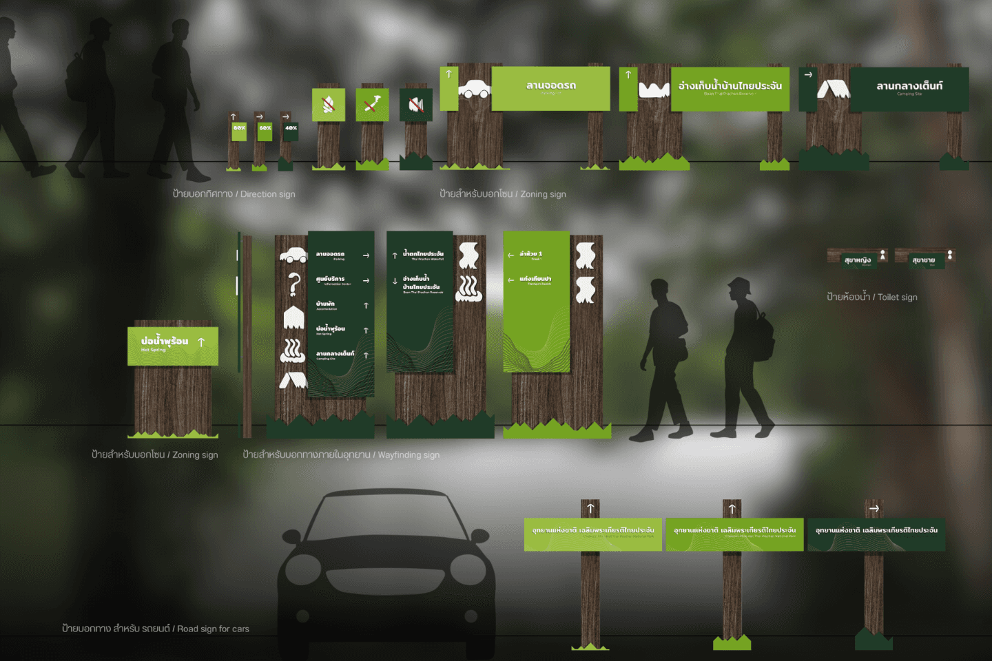 โครงการนี้ออกแบบเพื่อส่งเสริมการท่องเที่ยวอุทยานแห่งชาติเฉลิมพระเกียรติไทยประจัน โดยมุ่งอํา นวยความสะดวกด้านการนําทางและการรับรู้พื้นที่ของนักท่องเที่ยว ภายใต้การคํา นึงถึงบริบททางธรรมชาติ ภูมิประเทศ และอัตลักษณ์ของพื้นที่ รูปแบบการออกแบบได้รับแรงบันดาลใจจากสภาพแวดล้อม องค์ประกอบ และเสียงจากธรรมชาติ ระบบป้ายถูกออกแบบให้เข้าใจง่าย ชัดเจนและลดการรบกวนทัศนียภาพ เพื่อส่งเสริมประสบการณ์การท่องเที่ยวเชิงธรรมชาติ โดยเคารพต่อระบบนิเวศของอุทยานแห่งชาติ